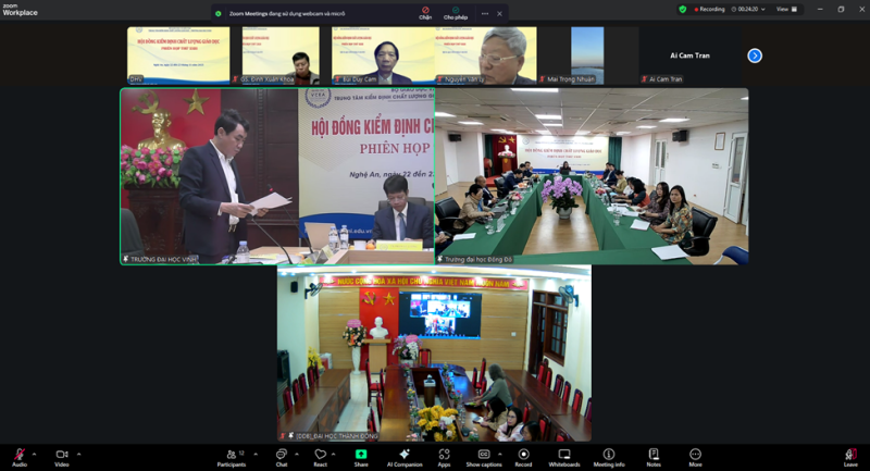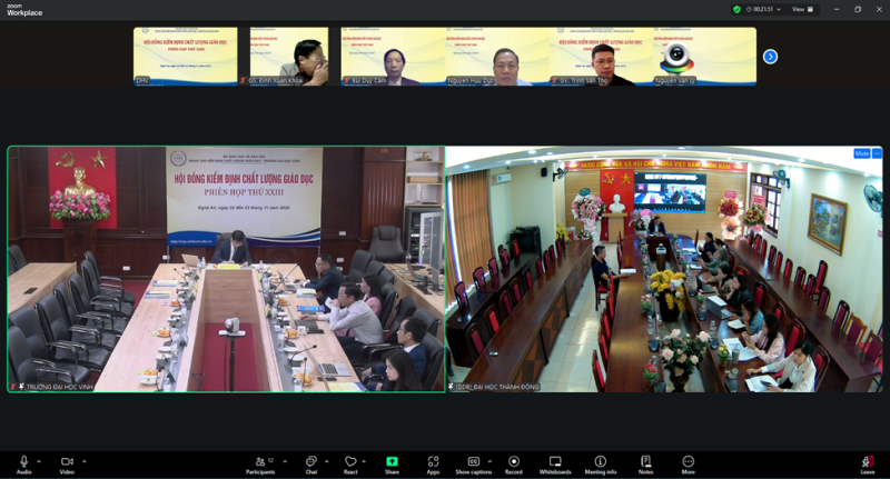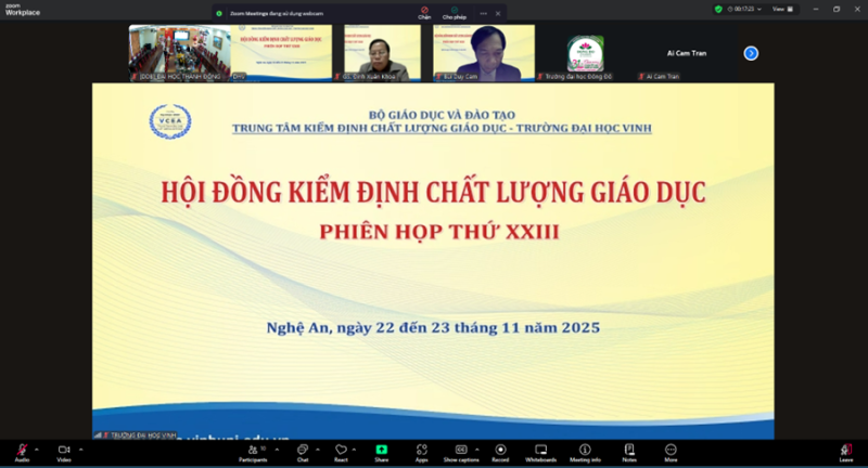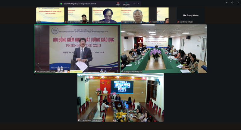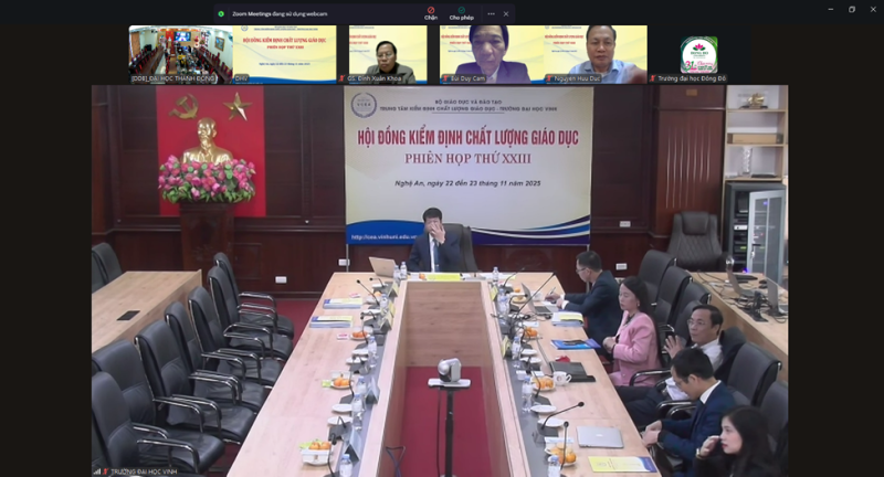 Trong hai ngày 22 và 23/11/2025, Khoa Công nghệ thông tin đã tham dự trực tuyến phiên họp Hội đồng Kiểm định chất lượng giáo dục thuộc Trung tâm Kiểm định chất lượng giáo dục – Trường Đại học Vinh. Phiên họp được tổ chức nhằm thẩm định và bỏ phiếu thông qua kết quả đánh giá chất lượng đối với các chương trình đào tạo đã hoàn thành quá trình tự đánh giá và được Đoàn chuyên gia đánh giá ngoài khảo sát chính thức trong thời gian vừa qua.
