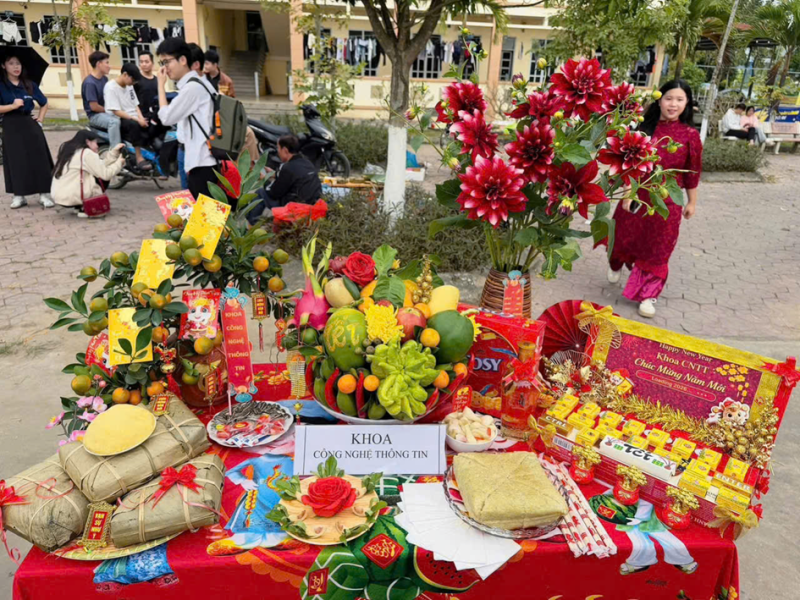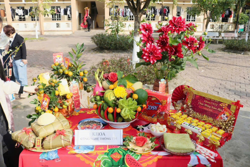 Ngay từ khâu chuẩn bị, các bạn sinh viên đã chủ động nguyên vật liệu, phân công nhiệm vụ rõ ràng và phối hợp ăn ý trong suốt quá trình gói bánh chưng và trưng bày mâm ngũ quả. Qua phần thể hiện này, sinh viên Khoa Công nghệ Thông tin không chỉ thông minh, sáng tạo trong học tập và nghiên cứu mà còn khéo léo, chu đáo trong từng công đoạn của hoạt động truyền thống. Bằng tinh thần trách nhiệm và sự phối hợp nhịp nhàng, các đội thi của Khoa đã mang đến những phần dự thi đẹp mắt, đậm nét văn hóa, để lại ấn tượng tốt với Ban Tổ chức và các đơn vị tham gia.