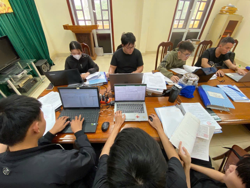 Các hình ảnh ghi lại hoạt động cho thấy sự tập trung cao độ của sinh viên trong việc nghiên cứu tài liệu, làm việc trên máy tính tại các văn phòng làm việc. Một số sinh viên còn tham gia vào công tác kỹ thuật, lắp đặt thiết bị và làm việc tại hiện trường, thể hiện sự đa dạng trong trải nghiệm nghề nghiệp. Sinh viên đã tuân thủ nghiêm ngặt nội quy, kỷ luật lao động và tham gia đầy đủ các buổi thực tập.